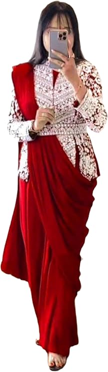Indian Women’s Party Wear Fancy Indo Western Drape Saree with Embroidered Koti